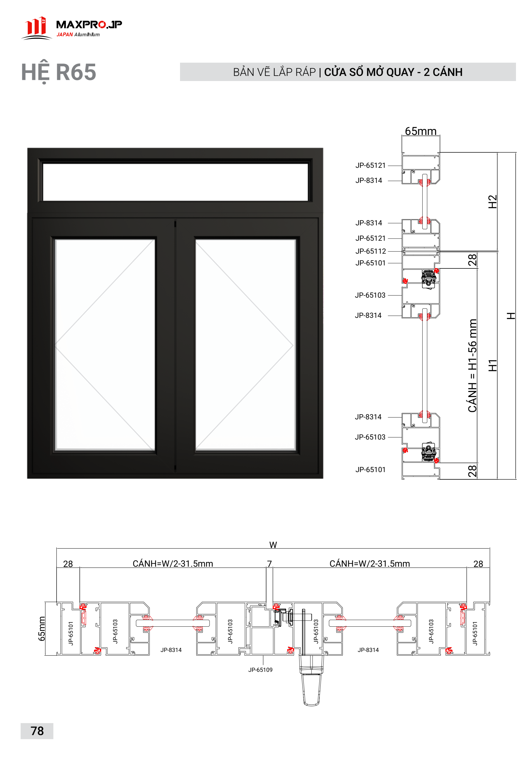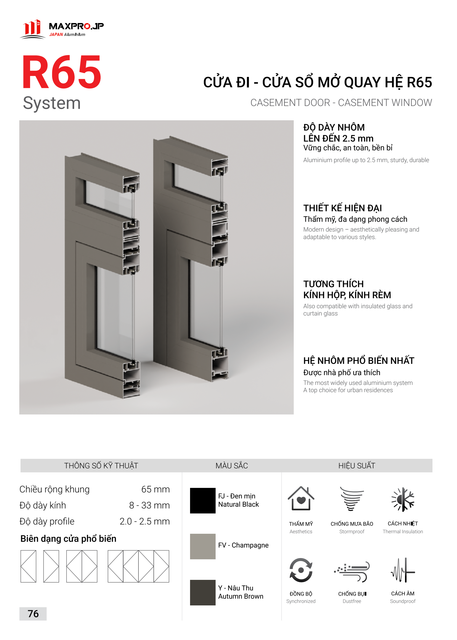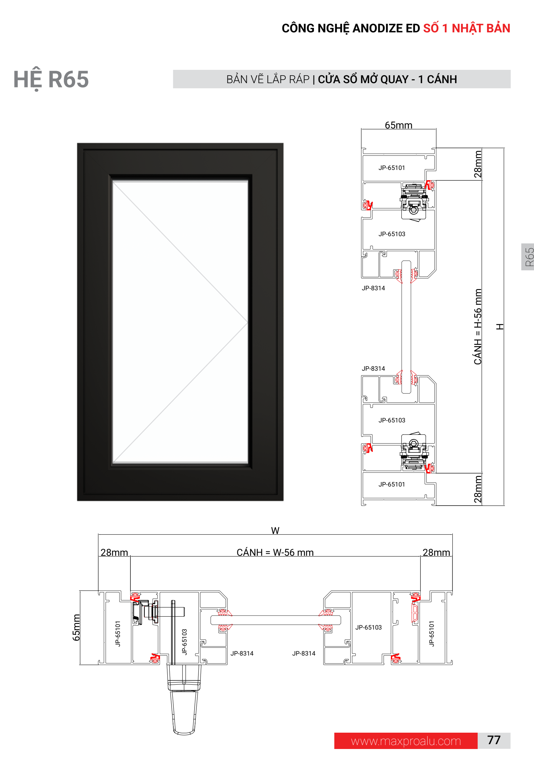 HỆ R65 CỬA MỞ QUAY