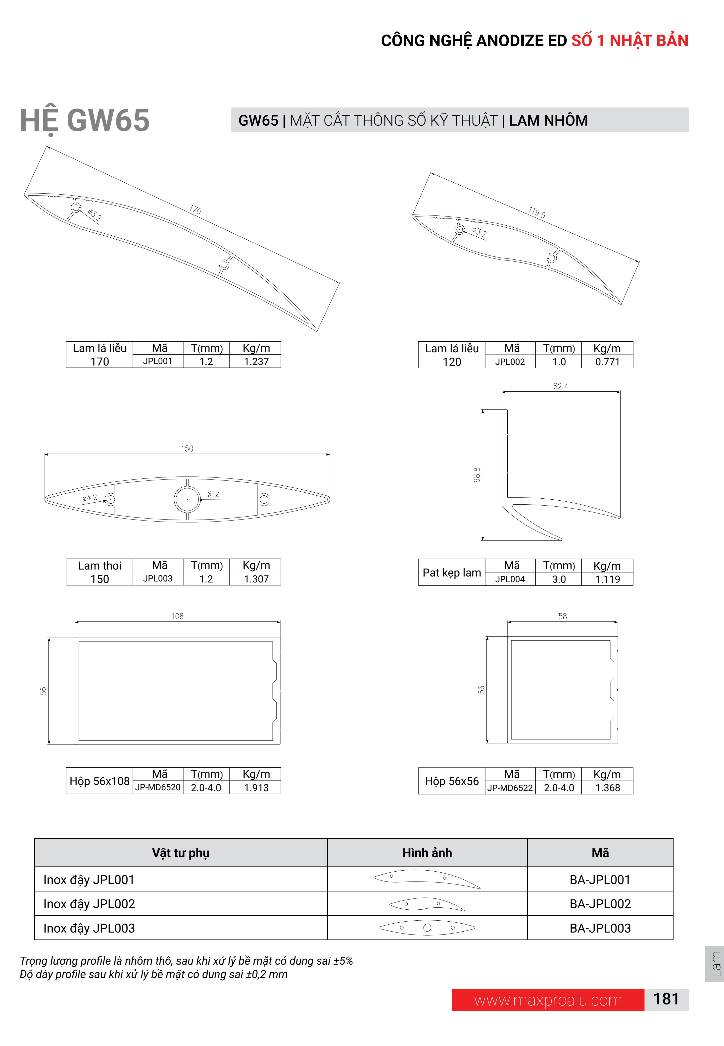 HỆ SW65 CỬA SỔ MỞ TRỢT