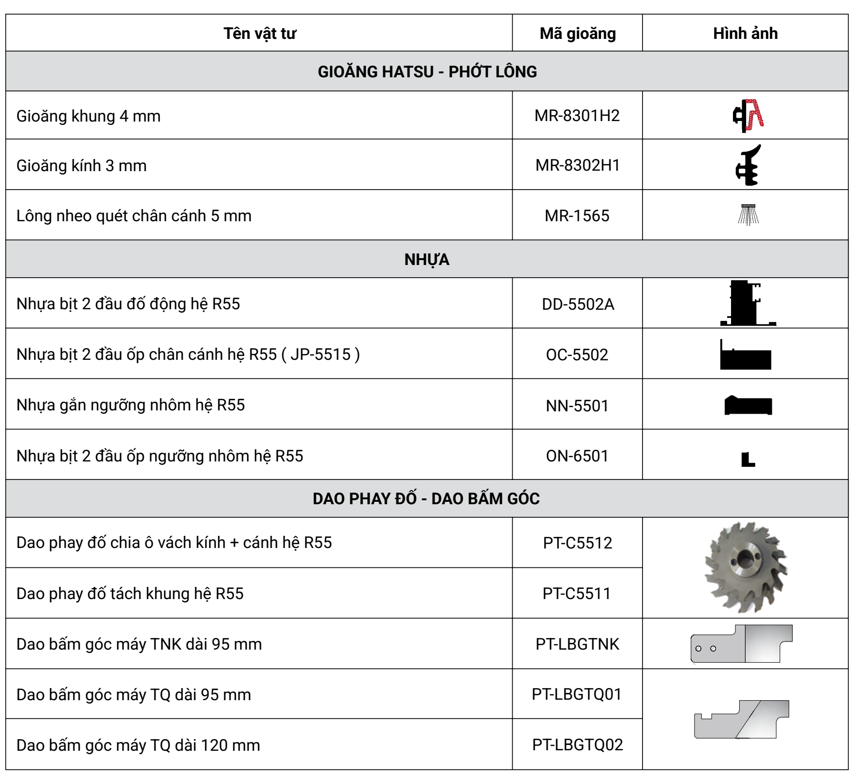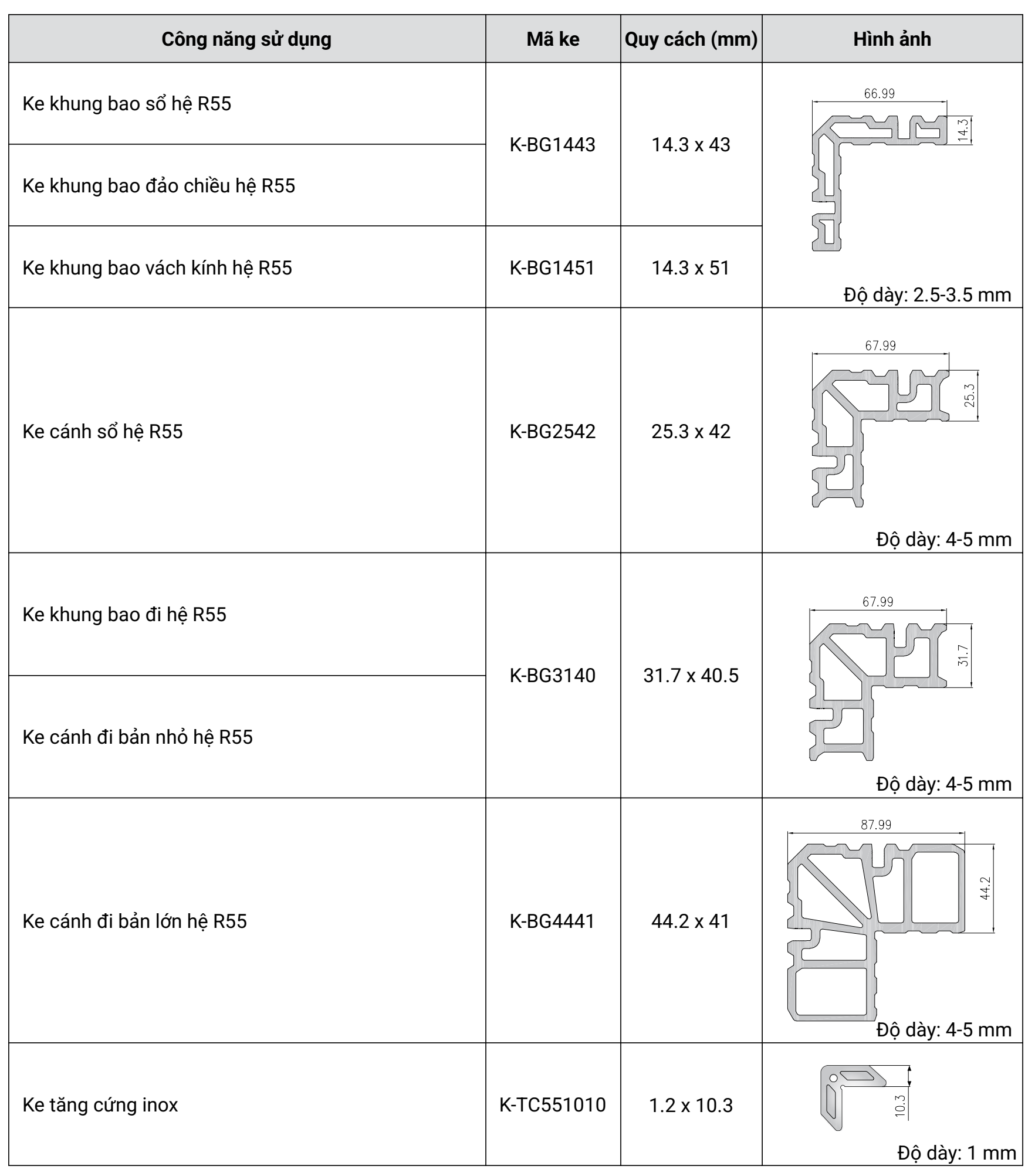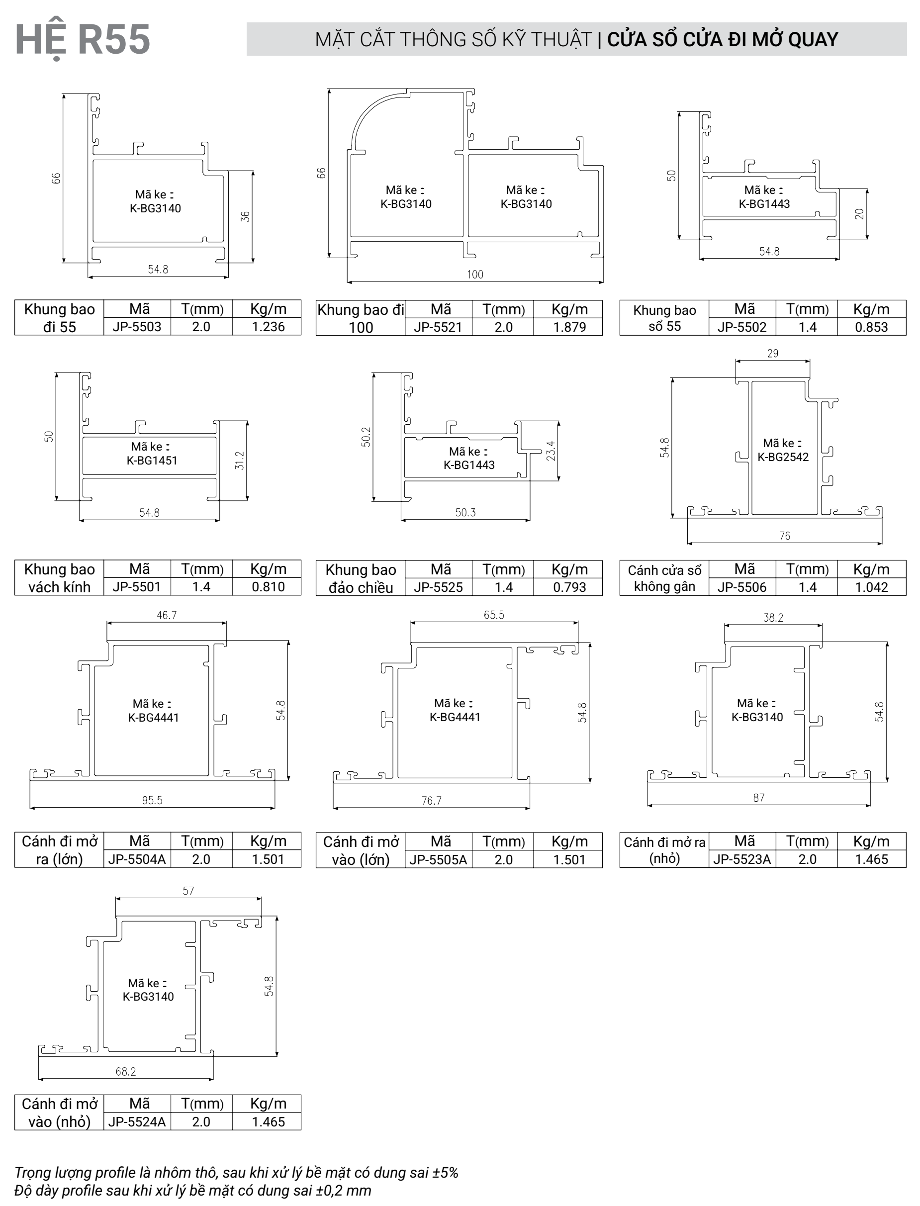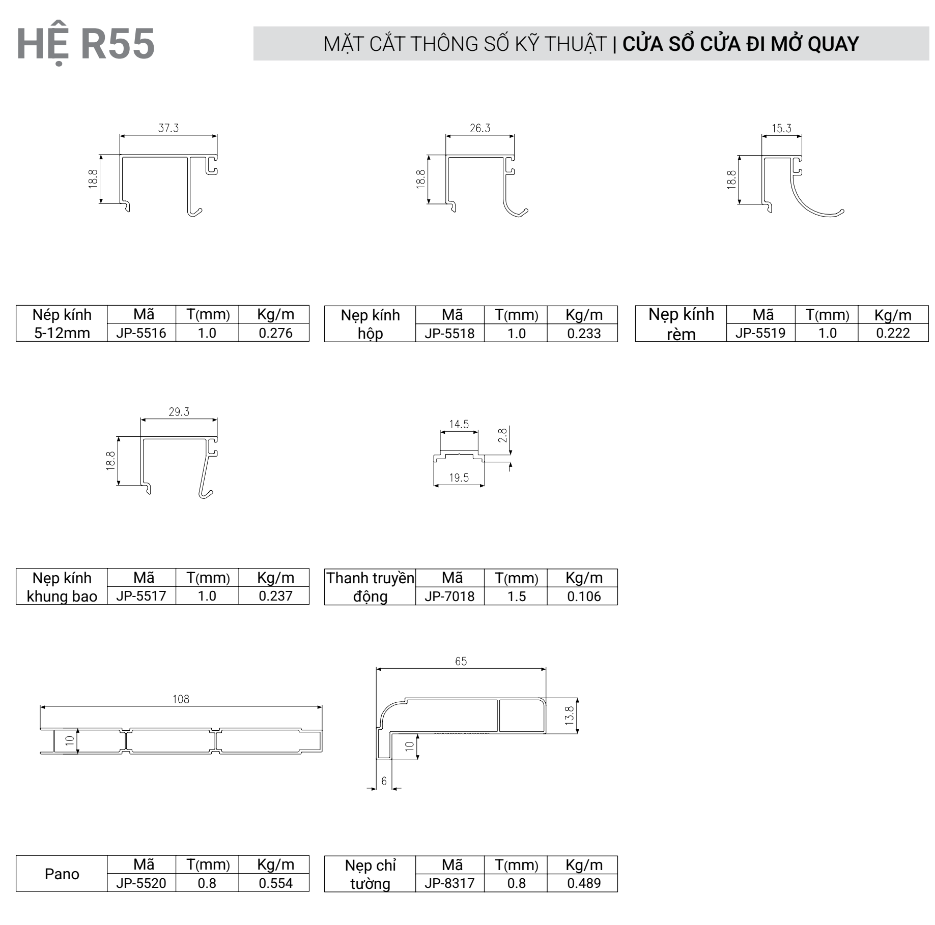 HỆ SW55 CỬA SỔ MỞ TRỢT