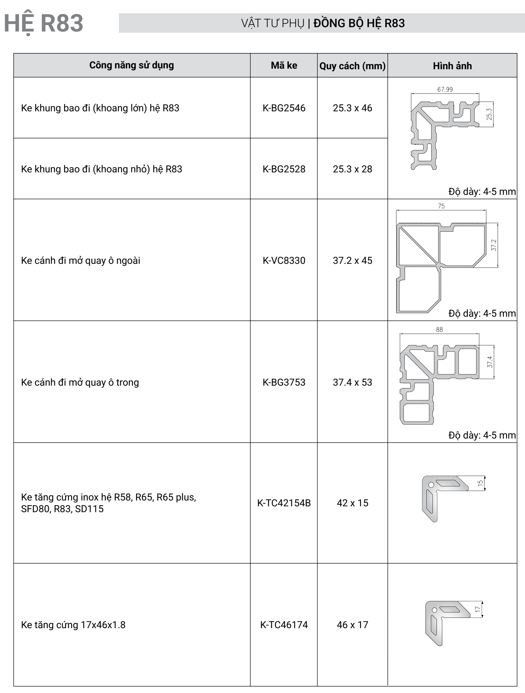 HỆ SW83 CỬA SỔ MỞ TRỢT
