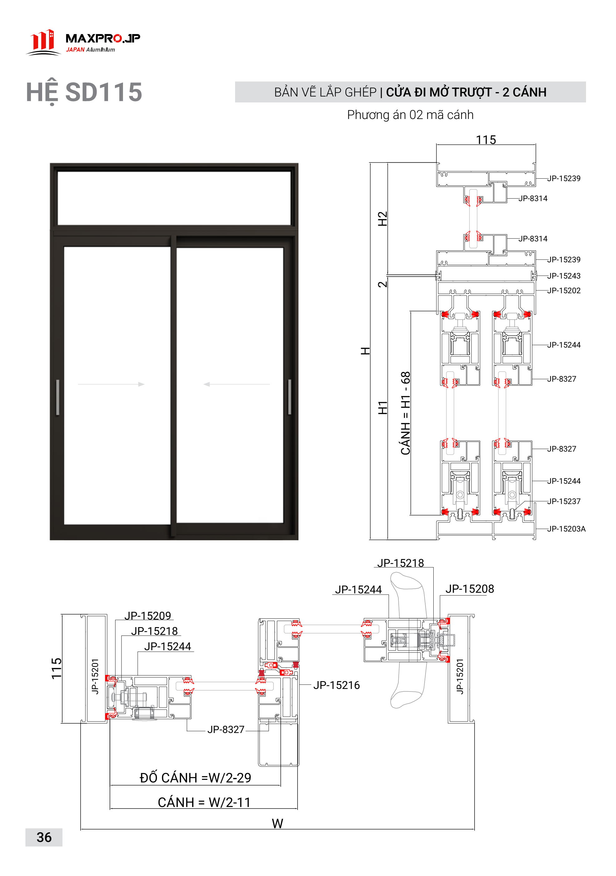 HỆ SD115 CỬA ĐI MỞ TRỢT