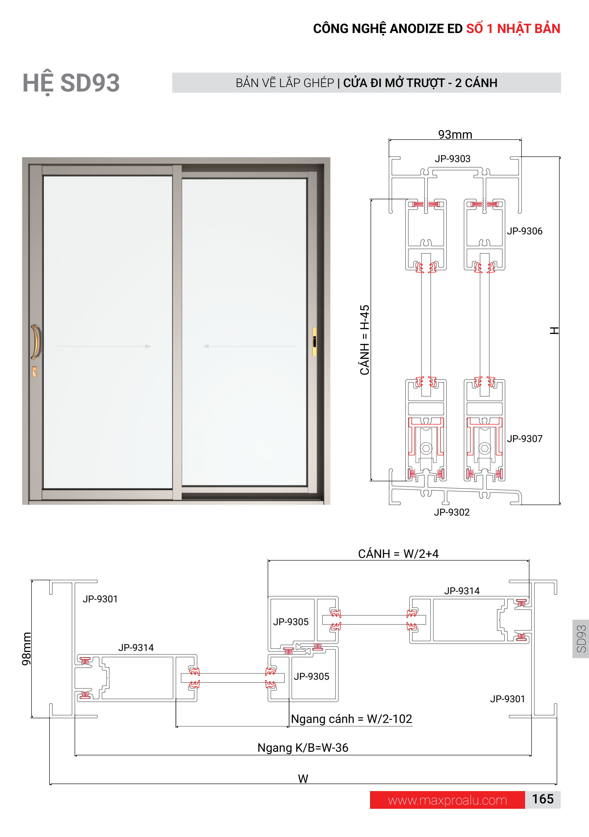 HỆ SD93 CỬA ĐI MỞ TRỢT